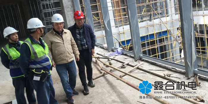 2019年4月10日,安徽鑫合機(jī)電總經(jīng)理曹克忠至上海市奉賢區(qū)上海金融基地酒店項(xiàng)目考察及現(xiàn)場(chǎng)指導(dǎo)工作,三局項(xiàng)目經(jīng)理李志佳、鑫合機(jī)電項(xiàng)目經(jīng)理湯大海及張友學(xué)陪同參觀考察。